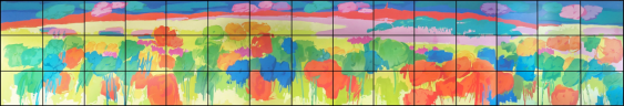 晨晓的色彩,如:《色彩·岭》,《彩色树林》系列首先是一种震撼性的“唤醒”。他摒弃了中间调的暧昧与灰调子的妥协,转而使用极高饱和度、强烈对比度的色彩组合。无论是仿佛汲取了南太平洋阳光的钴蓝与翠绿,还是如同火山熔岩般炽热的朱红与橙黄,这些色彩以不容置疑的力量,直接撞击观者的视觉神经,强行将其从日常的视觉惯性与麻木中“震”醒。这好比一个在昏暗房间里待久了的人,突然被推至正午的阳光下,瞬间的目眩神迷之后,是世界前所未有的清晰与鲜活。然而,唤醒仅仅是救赎之路的起点,晨晓色彩真正深刻之处,在于他所强调的“唤醒的实现过程”即“体验”。他像一位深谙冥想之道的禅师,其作品并非提供一个确定的答案,而是营造一个“场”,引导观者进入其中,进行一场纯粹的个人化色彩体验。这正如文中那个精妙的比喻:一个人在阳光明媚的树林中散步,一片旋转飘落的树叶,一丝悬着露珠的银色蛛丝,偶然映入眼帘,在这一瞬间,他并非通过逻辑分析,而是通过全身心的体验,突然“悟”到了季节轮回的奇妙,甚至感受到了“枯萎与断裂的美好”。